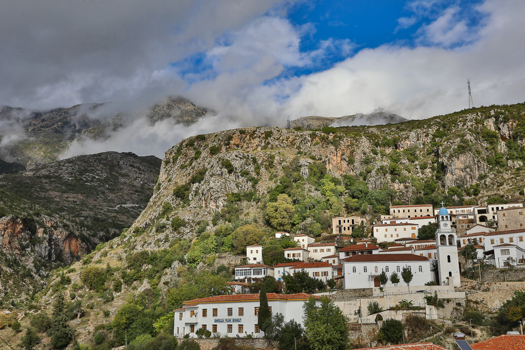 Coup de cœur : vieux village de Qeparo, Berat et les montagnes albanaises avec une vue quasi-permanente sur la mer.