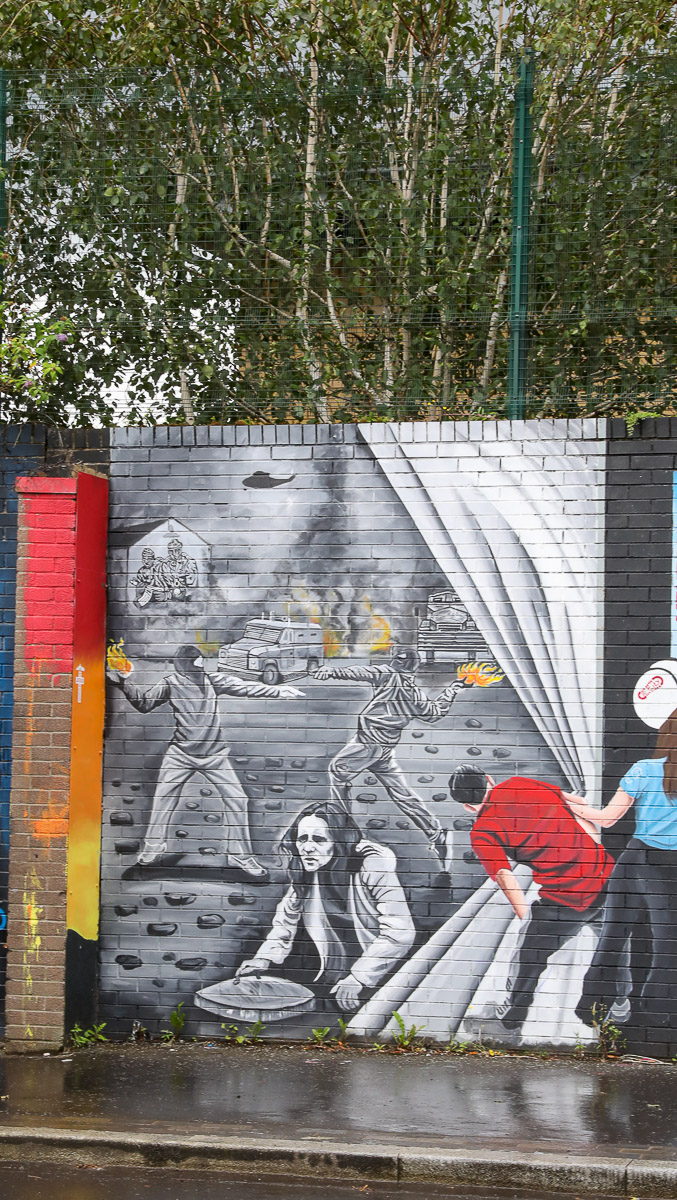 Fait marquant : à Belfast les séparations encore présentes sur une même rue avec des murs et des barbelés